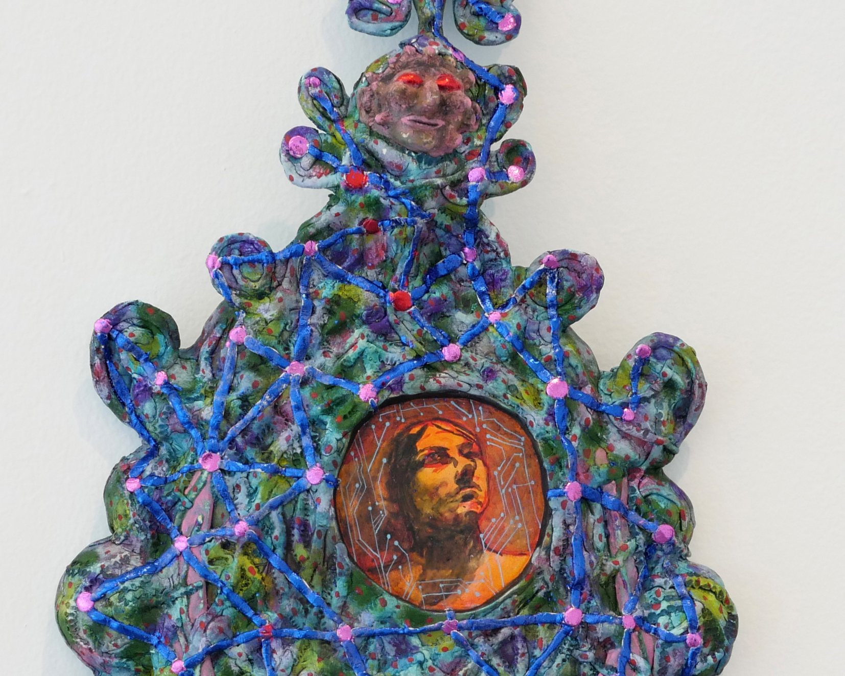 Inklings of familial history run through Oakley Tapola’s organically shaped epoxy clay wall reliefs. Focused on memories whose lingering power belies their seemingly banal unimportance, Tapola’s intensely intricate and colorful works conceal moments where individuals are subsumed by the environments surrounding them. From fears about the digital colonization of the lifeworld to a child’s terror at being stuck in a tube slide, Tapola’s assemblages address looming threats by asserting the value and importance of the handmade and intimate.